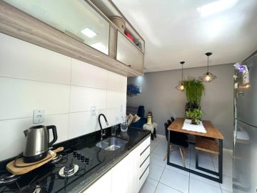 A casa ficará com móveis planejados na cozinha, pedra de granito, mesa de jantar, geladeira, forno, máquina de lavar, televisão, móveis do quarto, ar-condicionado. A garagem garante a segurança e proteção do seu veículo com uma estrutura metálica em policarbonato. Além de um portão com motor para facilitar seu dia a dia.